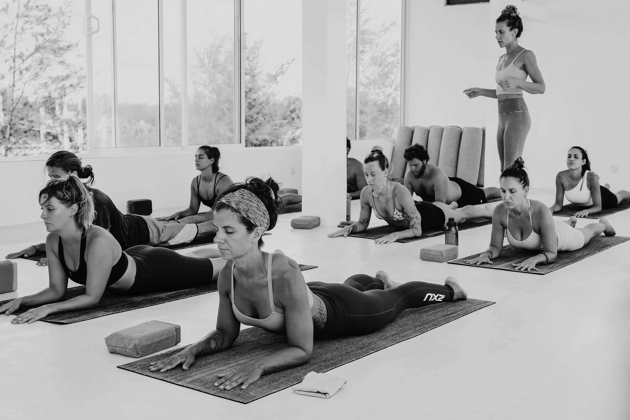 Forearm balance looks like headstand but demands more from your shoulders and more precision in your alignment. This session builds directly on Workshop 1 — the dolphin series goes deeper, the block alignment drill solves the most common error in the shape, and every participant gets spotted through their kick-up at the wall. Intermediate participants begin to explore balance away from the wall.